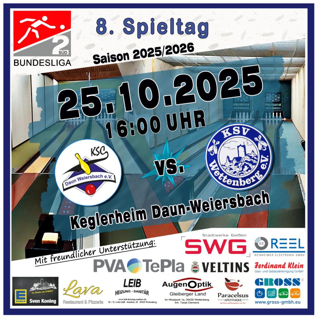 Der achte Spieltag der 2. Bundesliga Süd (Spielbeginn Samstag 16 Uhr) führt den KC 88 Wettenberg mit einer der vergleichsweise kürzeren Anfahrten in die Vulkaneifel zum Tabellensechsten KSC Daun-Weiersbach. Die Rheinland-Pfälzer haben bislang eine bemerkenswert turbulente Saison hinter sich, vom unerwarteten Auswärtsdreier in Hüttersdorf bis zur überraschenden Heimpleite gegen Aufsteiger Gilzem II war bereits alles dabei und so dürfen die Wettenberger gespannt sein, was der KSC rund um seinen absoluten Topspieler Dominik Werner auf seiner nicht ganz einfachen Kunststoffbahn anbieten wird.