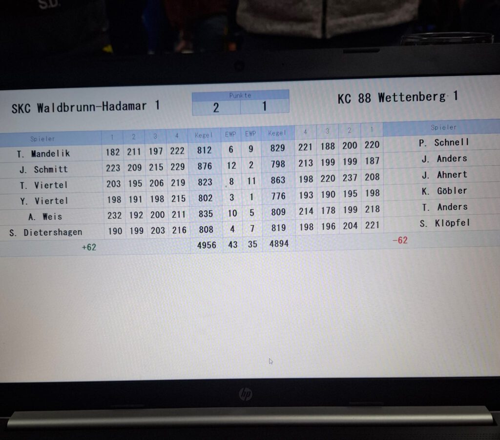 SKC Waldbrunn/Hadamar – KC 88 Wettenberg 4956:4894 (2:1/43:35)