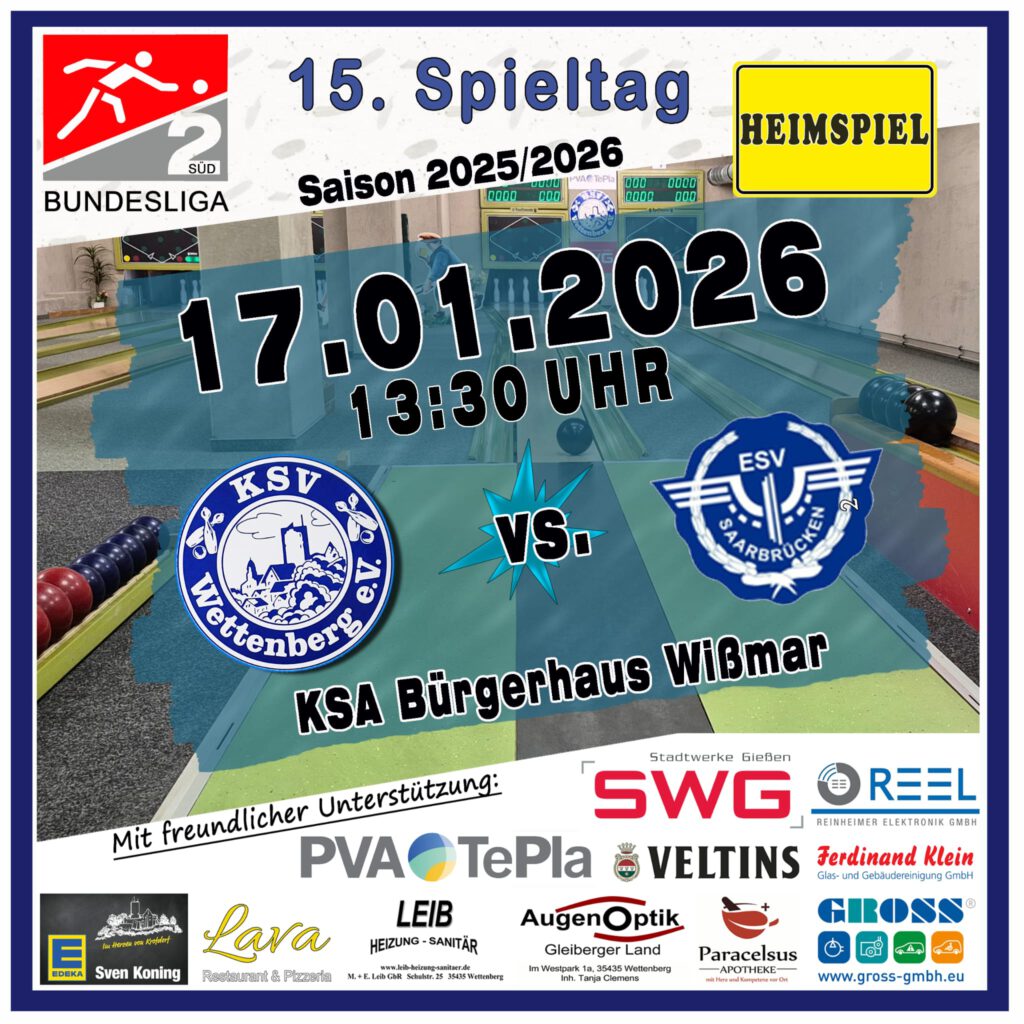 Auf der Zielgeraden der Hauptrunde in der der 2. Bundesliga Süd gibt der Tabellendritte ESV Saarbrücken seine Visitenkarte zum 15. Spieltag am kommenden Samstag (Spielbeginn 13:30 Uhr) im Wißmarer Bürgerhaus beim KC 88 Wettenberg ab.