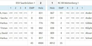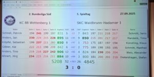ESV Saarbrücken – KC 88 Wettenberg 4984:4912 (2:1/43:35) Der KC 88 Wettenberg blieb auch am sechsten Spieltag der 2. Bundesliga Süd auf der Erfolgsspur und holte sich in einer umkämpften …