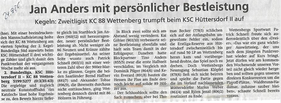 • 2. Bundesliga Süd – KC 88 Wettenberg 14. Spieltag